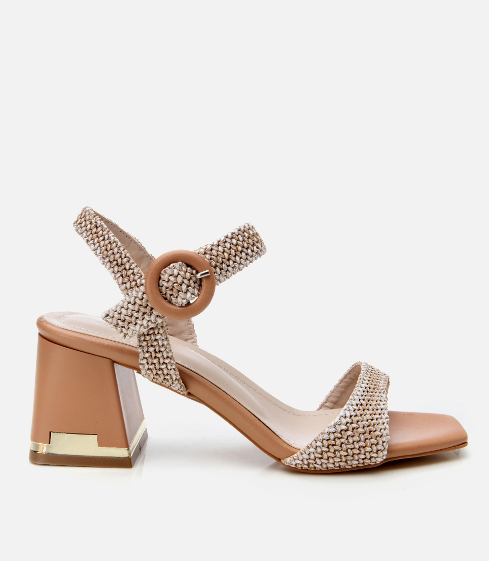 Kadın Bej Hasır Detaylı Topuklu Sandalet