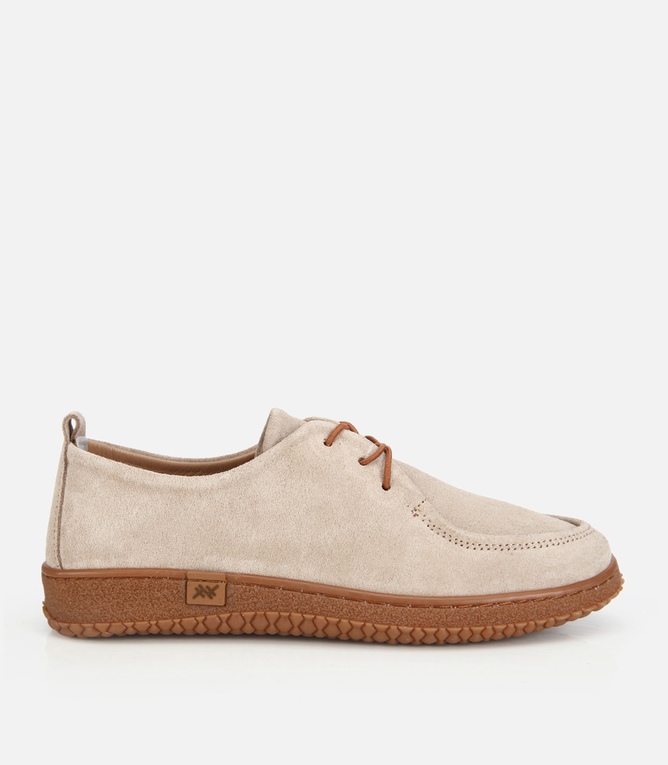 Kadın Süet Deri Bej Esnek Tabanlı Günlük Loafer