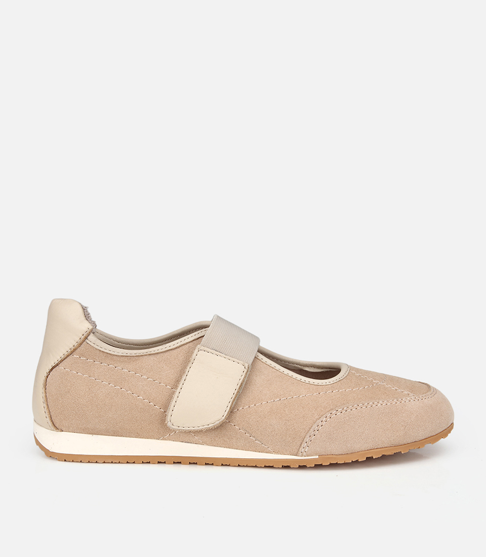 Kadın Süet Deri Bej Tek Bantlı Comfort Babet