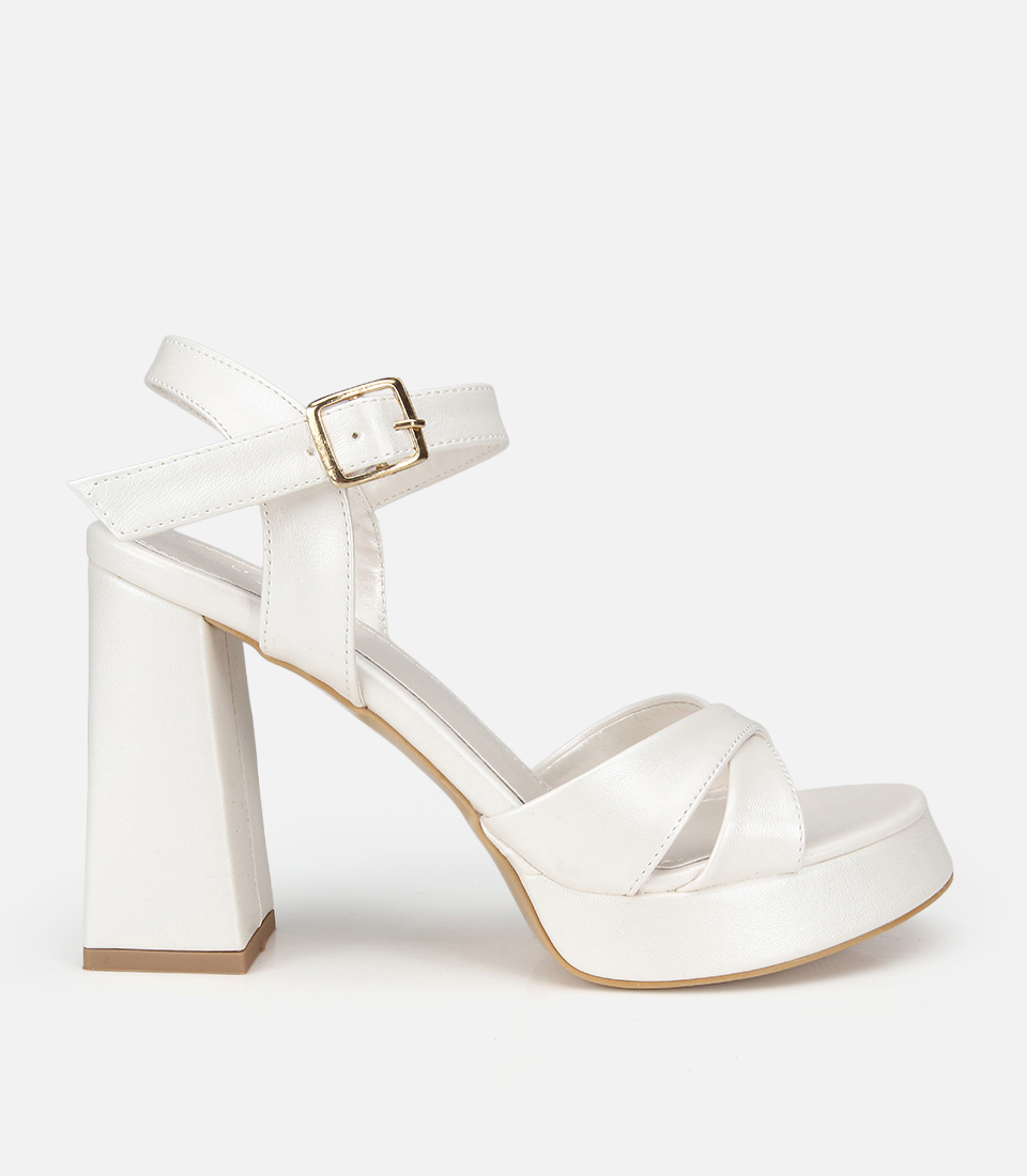 Kadın Beyaz Bantlı Kalın Tabanlı Topuklu Sandalet