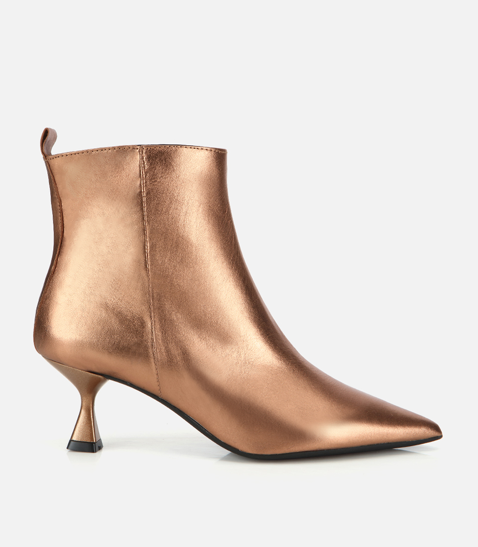 Kadın Deri Bronz Sivri Burunlu Bilekte Topuklu Bot