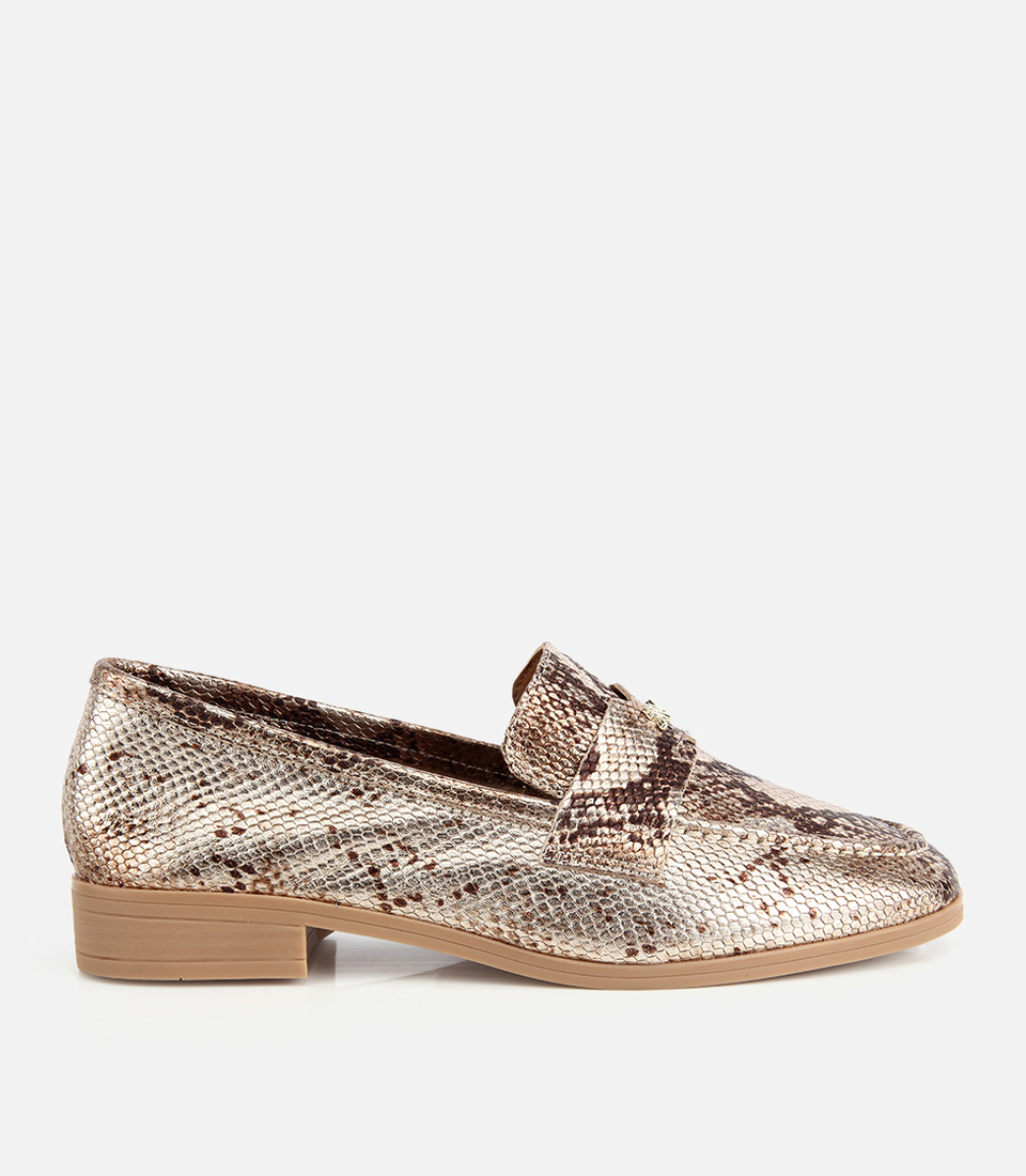 Kadın Deri Gold Yılan Baskılı Klasik Loafer