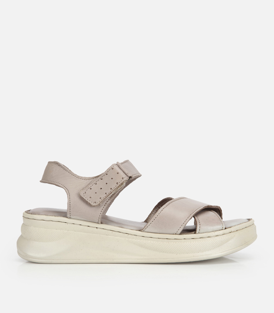 Kadın Deri Gri Yumuşak Comfort Düz Sandalet
