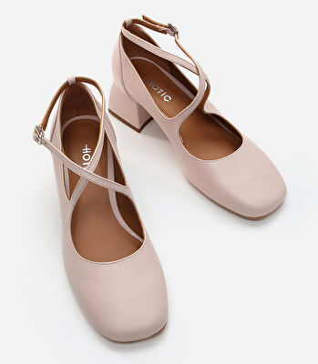 Kadın Deri Ekru Rahat Kalın Topuklu Ayakkabı