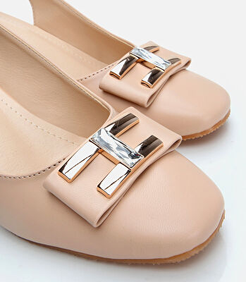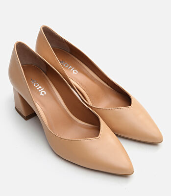 Kadın Deri Bej Rahat Kalın Topuklu Ayakkabı