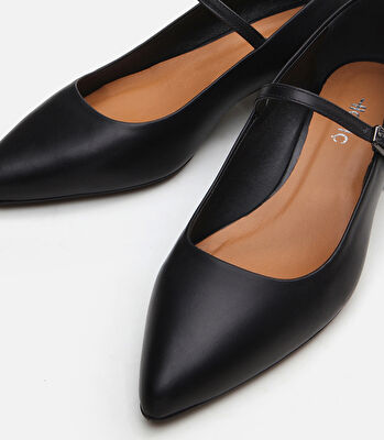 Kadın Deri Siyah Mary Jane Kalın Topuklu Ayakkabı