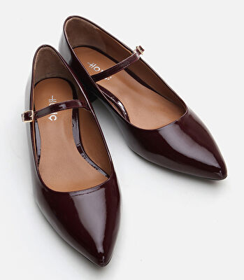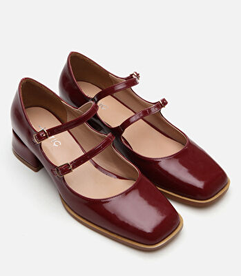 Kadın Rugan Deri Bordo Mary Jane Kalın Topuklu Ayakkabı