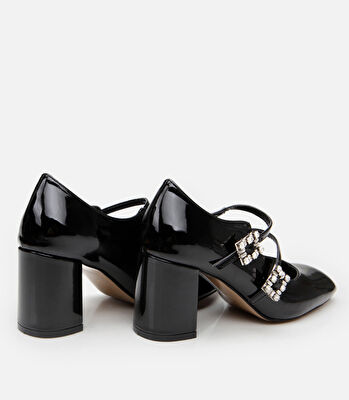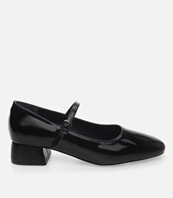 Kadın Rugan Deri Sİyah Mary Jane Kalın Topuklu Ayakkabı