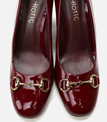 Kadın Rugan Deri Bordo Yumuşak Dokulu Kalın Topuklu Ayakkabı