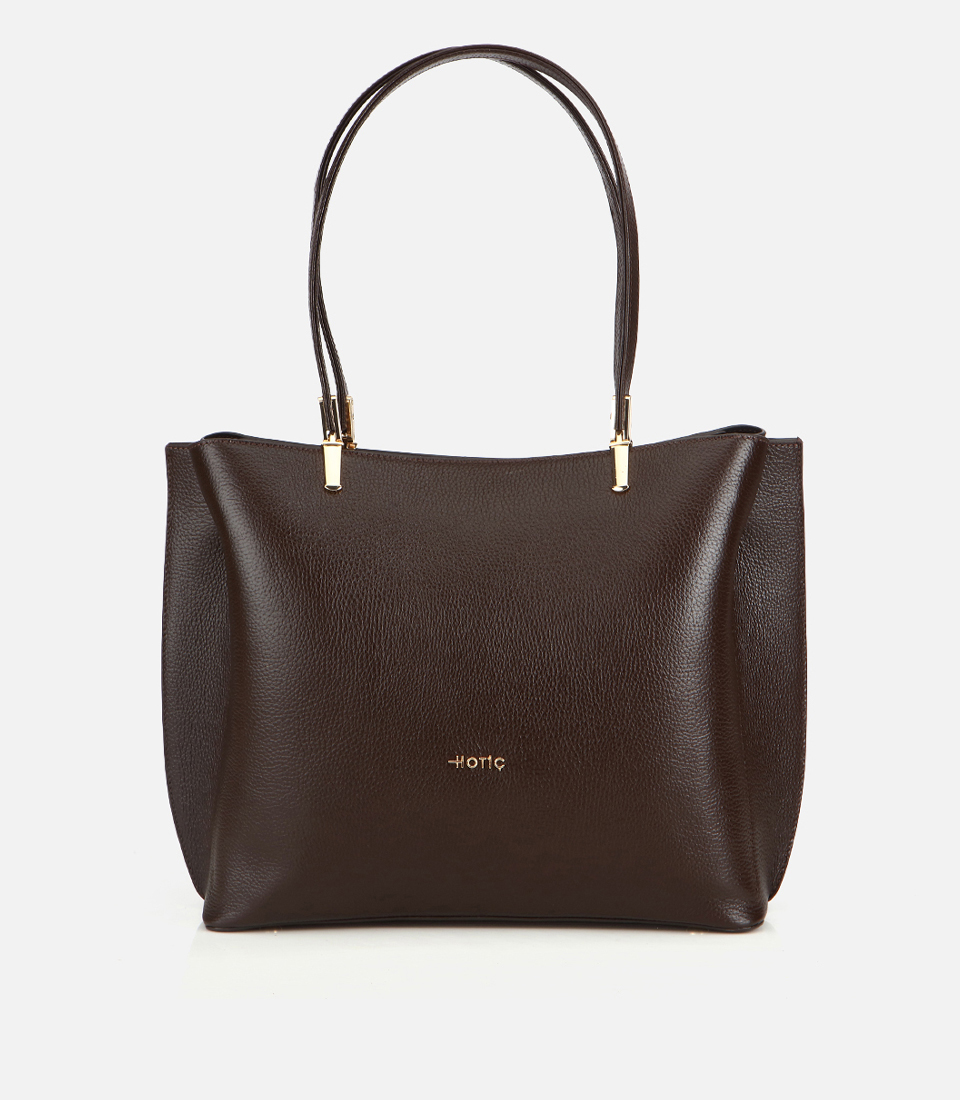 Kadın Deri Kahverengi Gold Detaylı Omuz Çantası