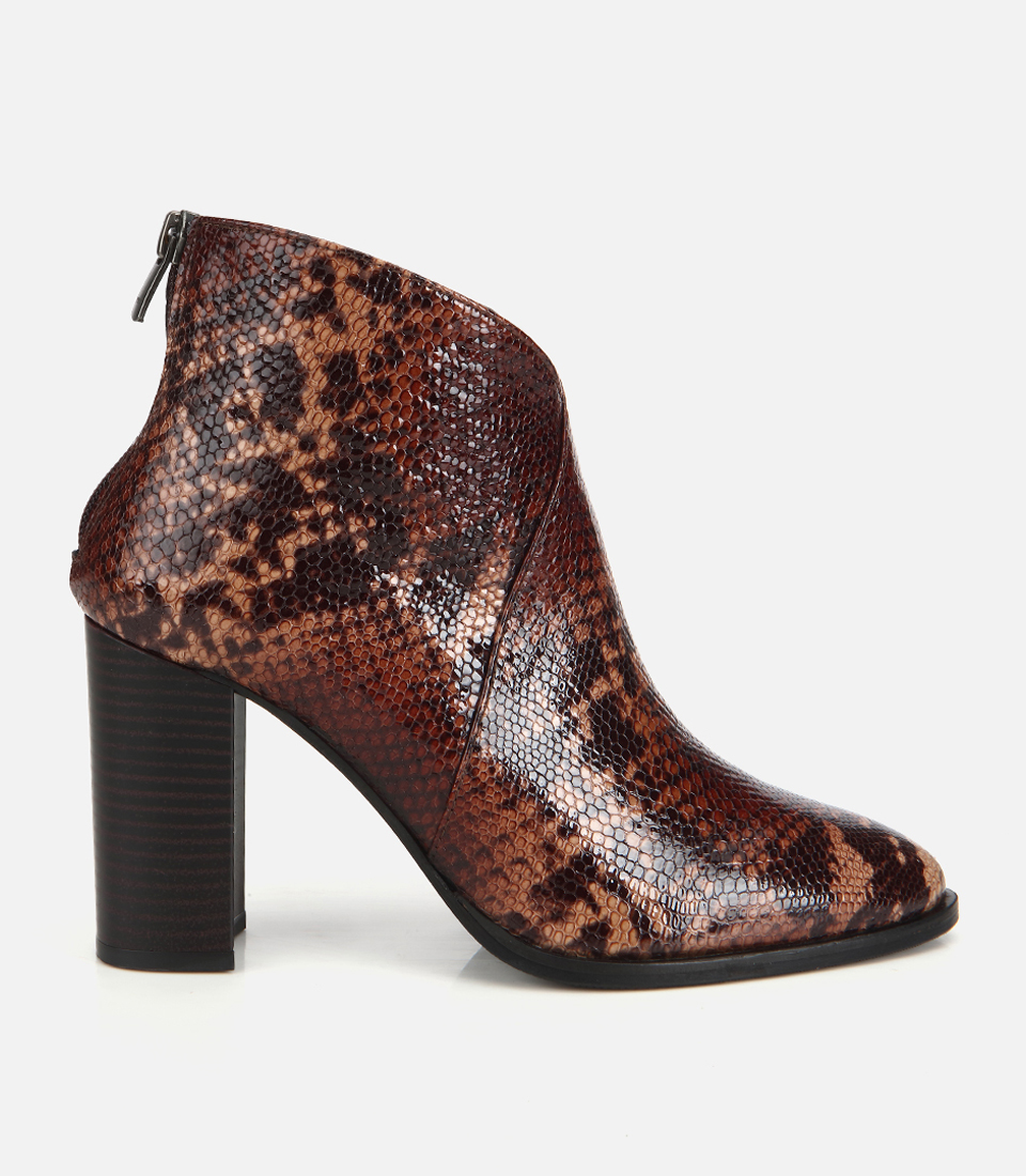 Kadın Deri Kahverengi Yılan Desenli Topuklu Bot