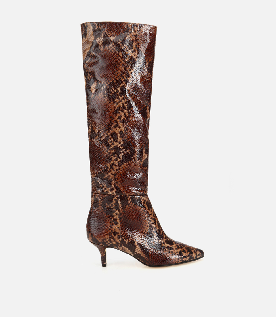Kadın Deri Yılan Desenli Sivri Burunlu Topuklu Çizme
