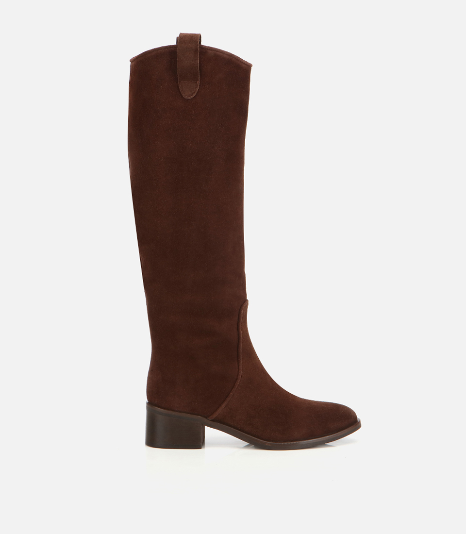 Kadın Süet Deri Kahverengi Binici Düz Çizme