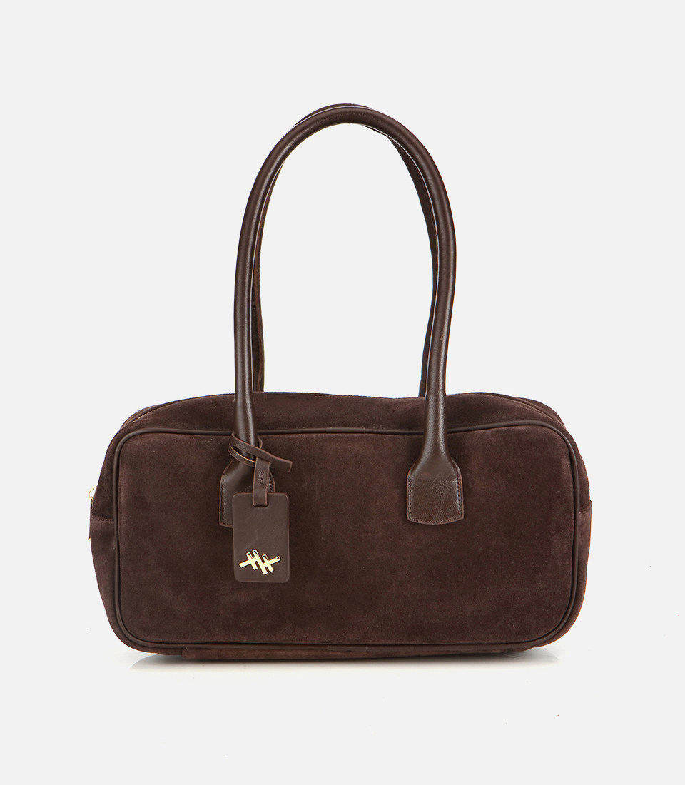 Kadın Süet Deri Kahverengi Bowling Omuz Çantası