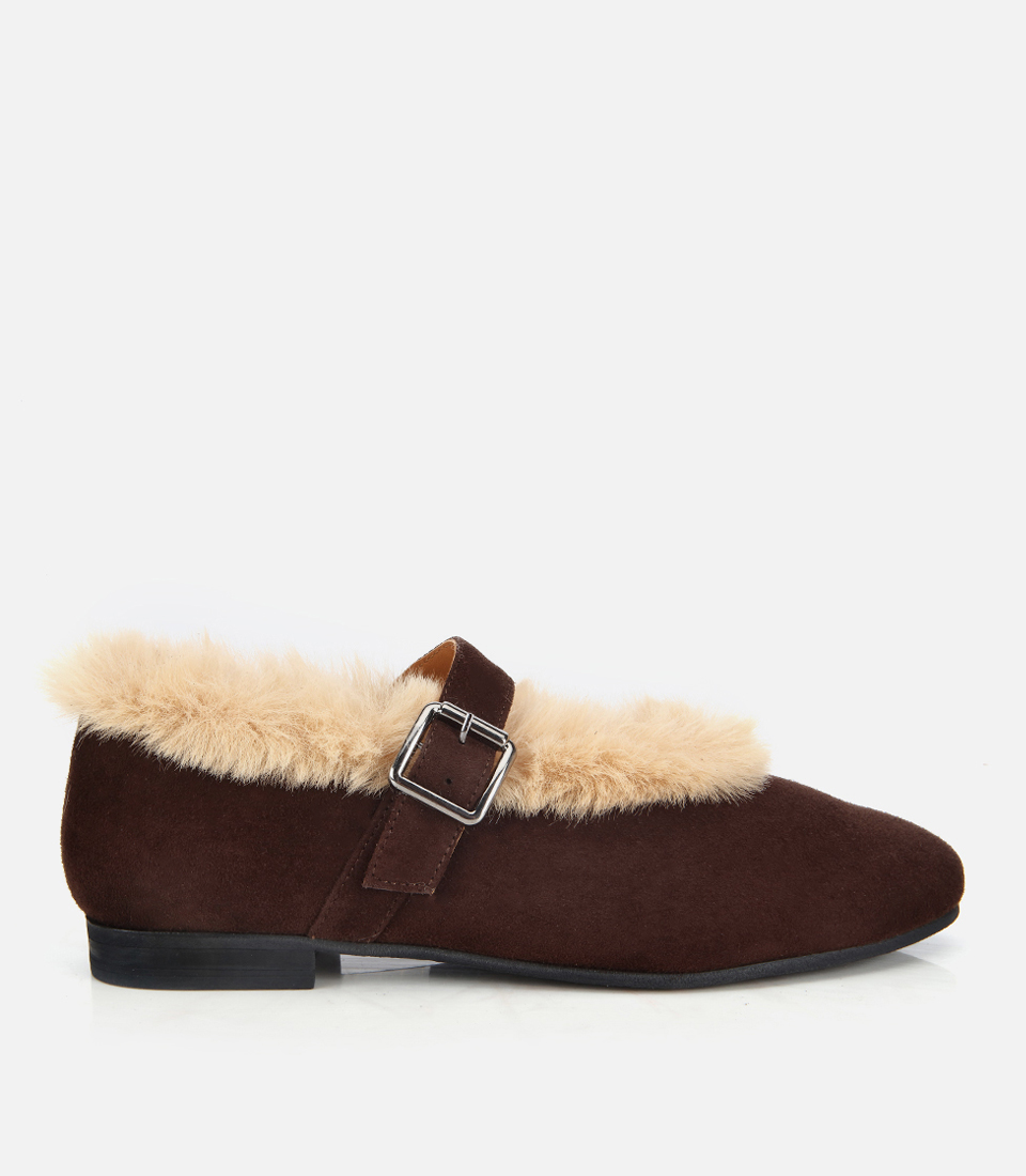 Kadın Süet Deri Kahverengi İçi Kürklü Tek Bantlı Babet