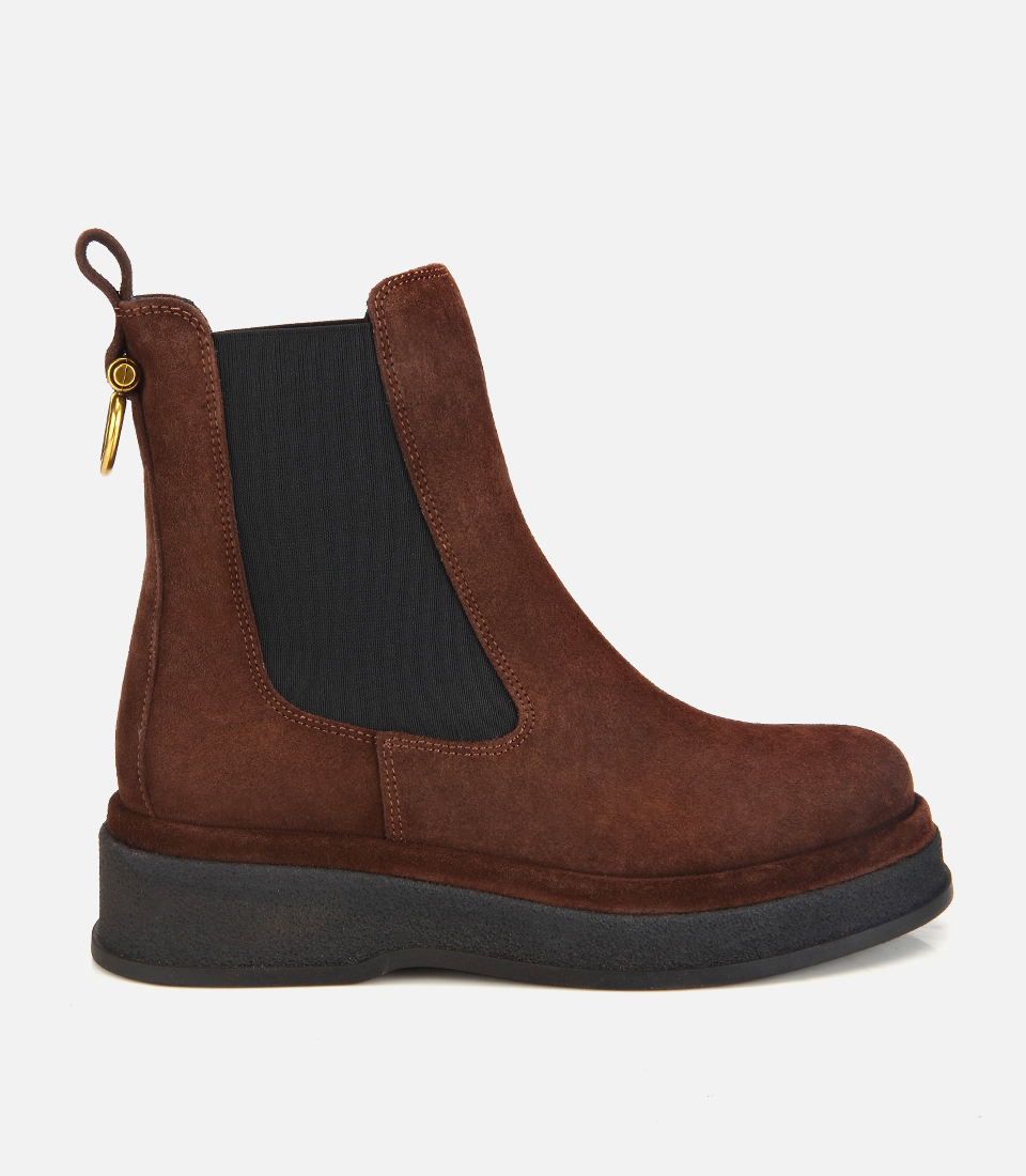 Kadın Süet Deri Kahverengi Lastik Detaylı Düz Bot