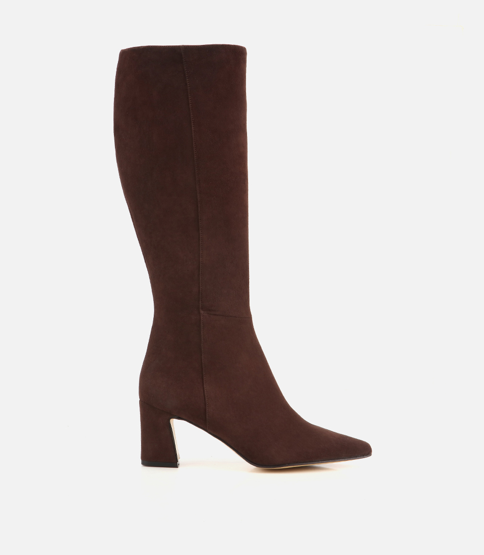 Kadın Süet Deri Kahverengi Sivri Burunlu Topuklu Çizme