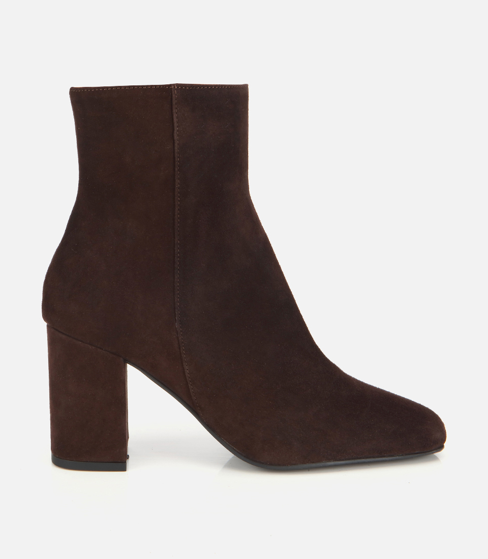 Kadın Süet Deri Küt Burunlu Topuklu Bot