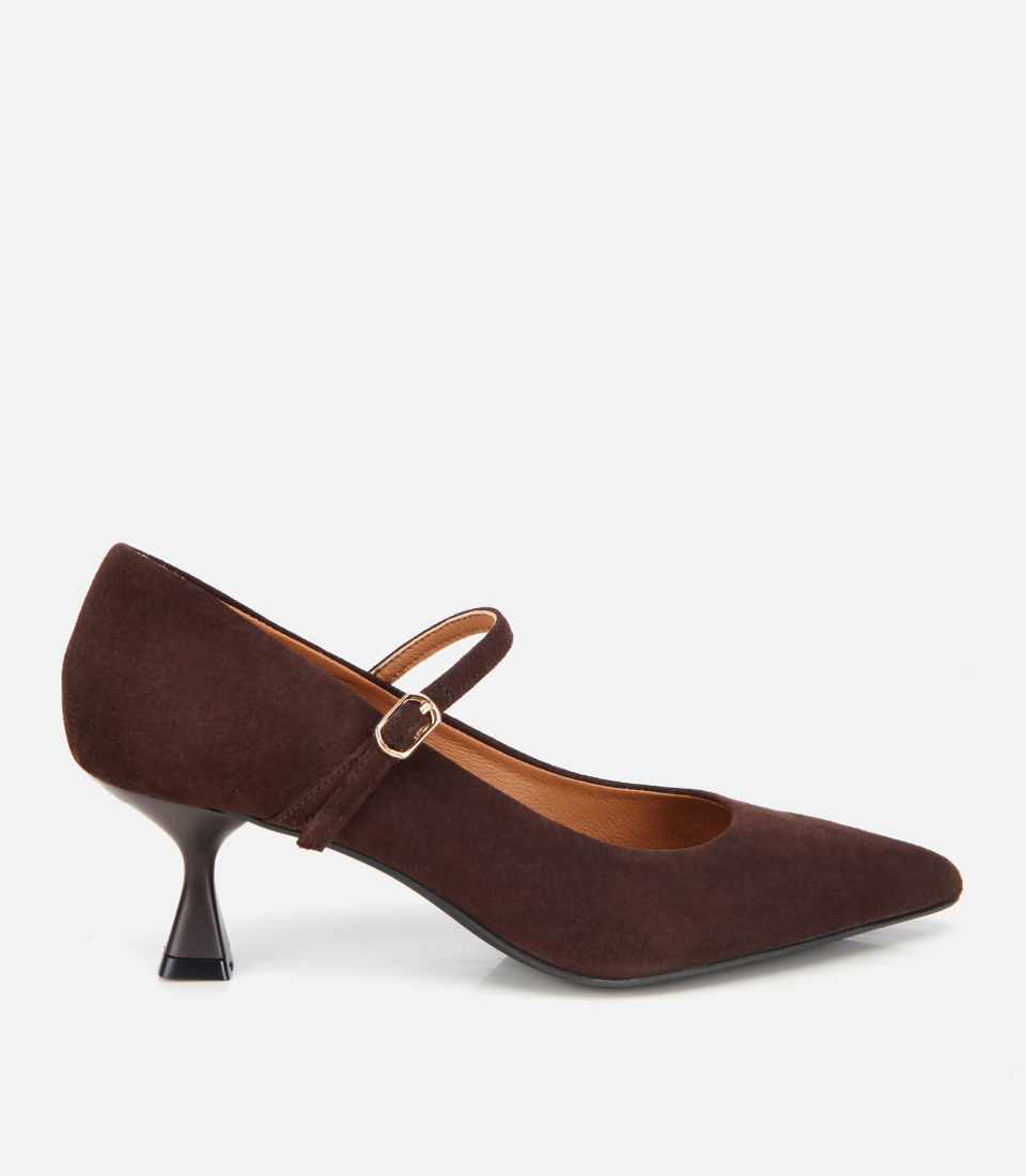 Kadın Süet Deri Mary Jane Kahverengi İnce Bantlı Stiletto