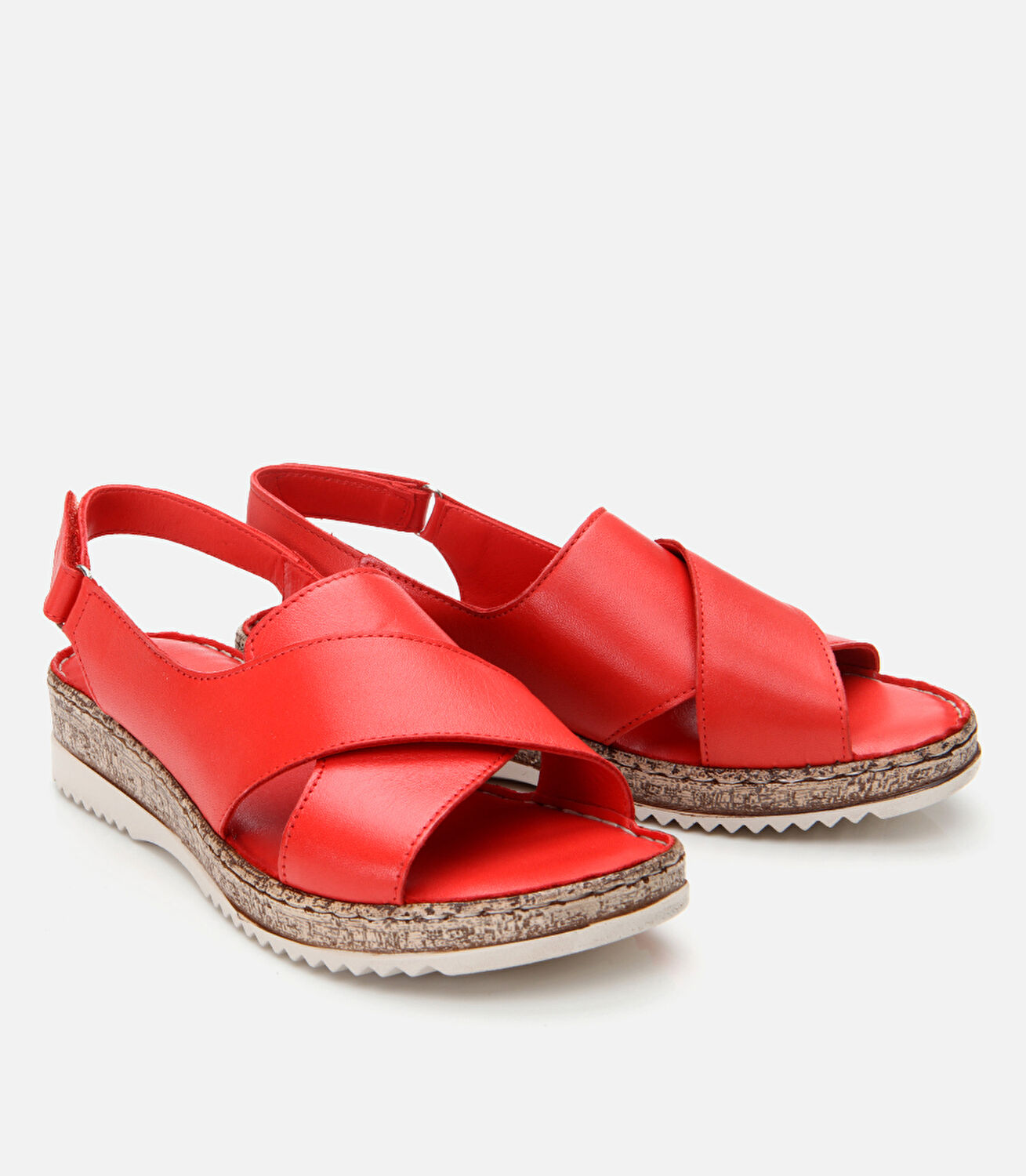 Kadın Deri Kırmızı Ayarlanabilir Comfort Sandalet