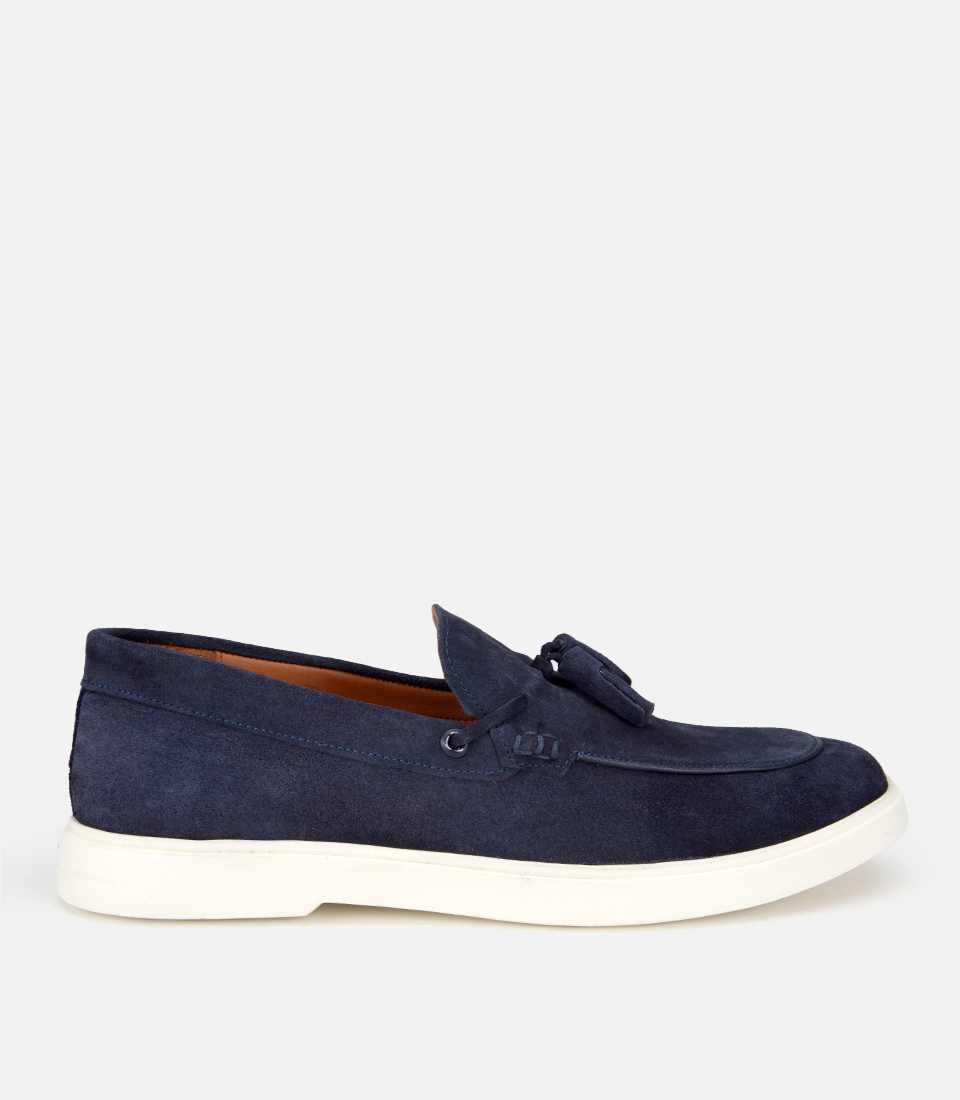 Erkek Süet Deri Lacivert Püskül Detaylı Günlük Loafer