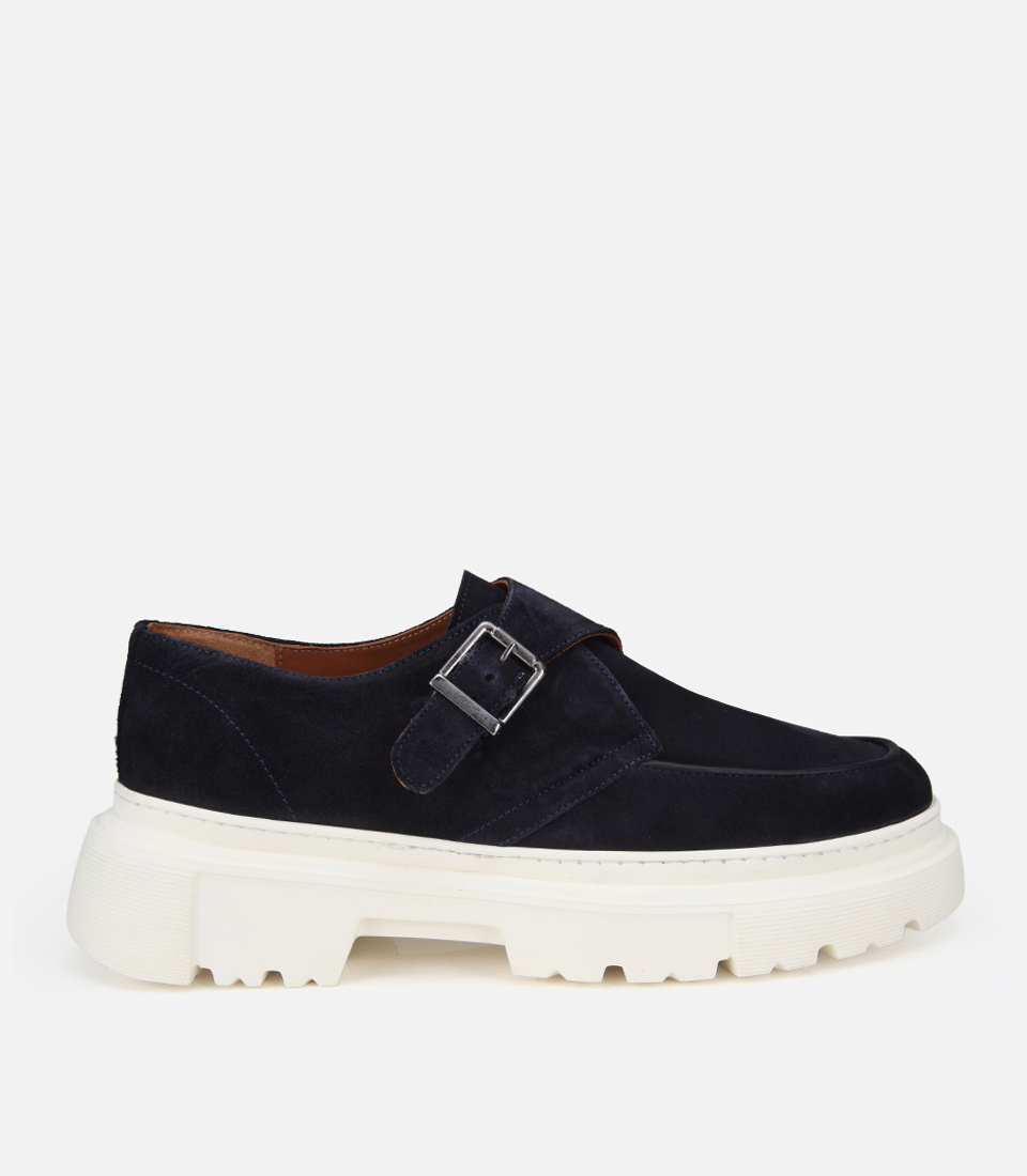 Erkek Süet Deri Lacivert Toka Detaylı Kalın Tabanlı Günlük Ayakkabı