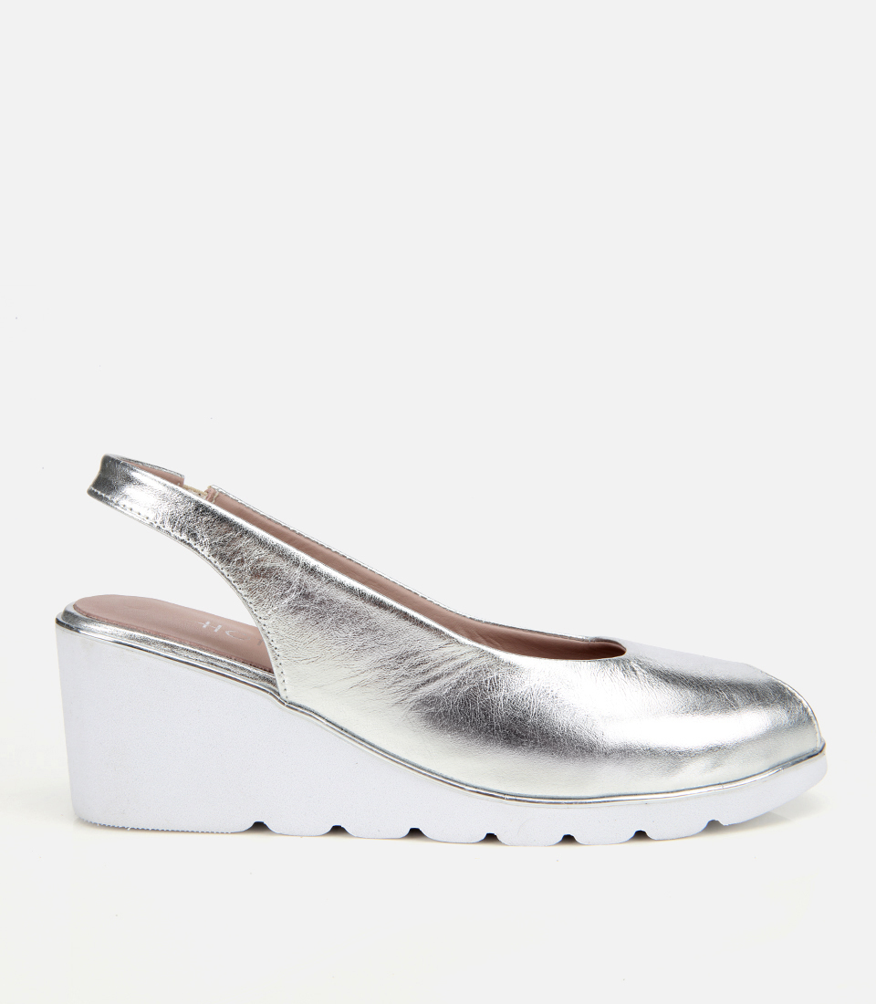 Kadın Deri Lame Tokalı Dolgu Topuklu Sandalet
