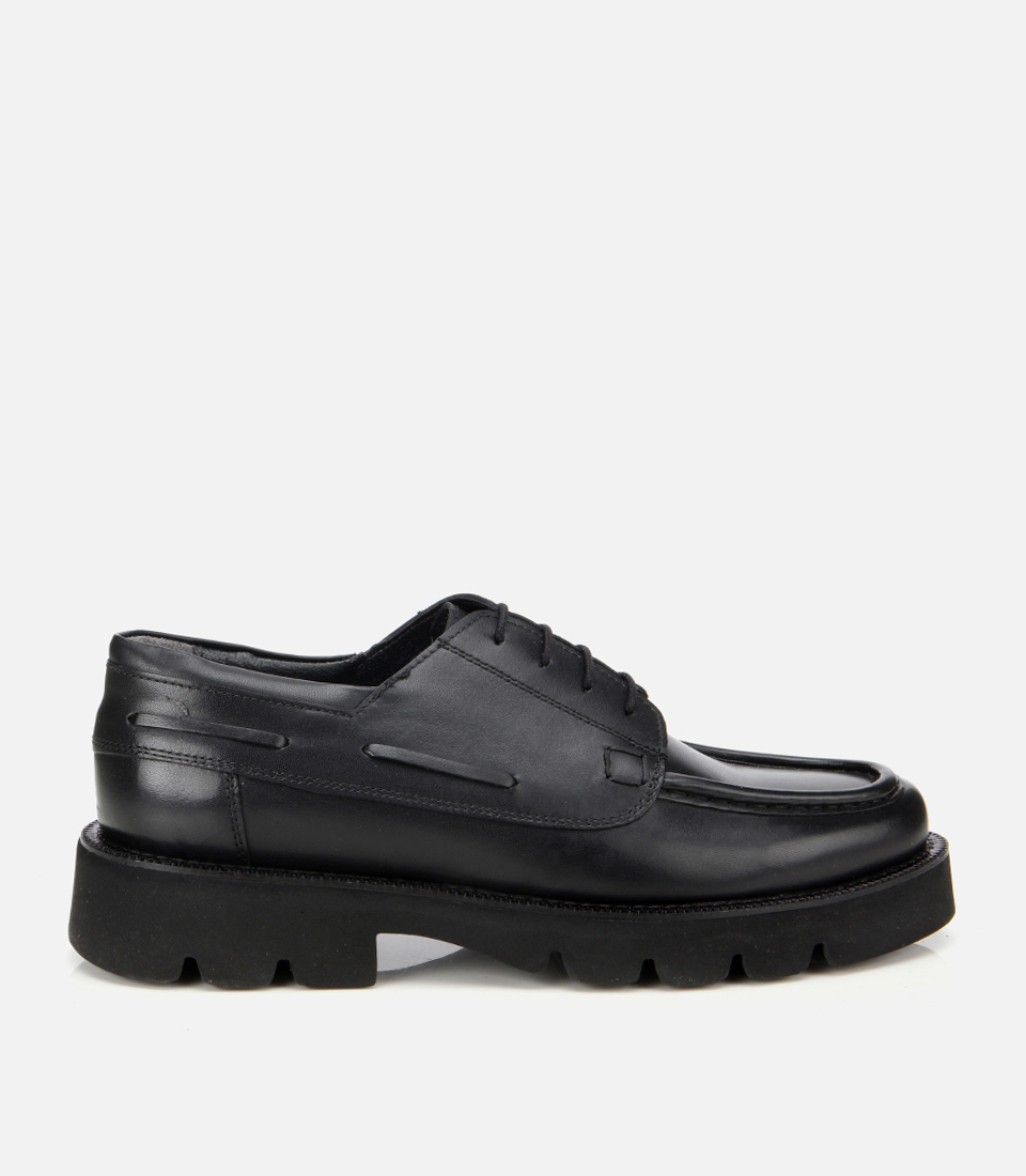 Erkek Deri Siyah Dikiş Burunlu Kalın Tabanlı Günlük Ayakkabı