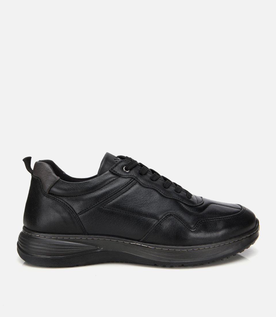 Erkek Deri Siyah Dikiş Detaylı Comfort Spor Ayakkabı