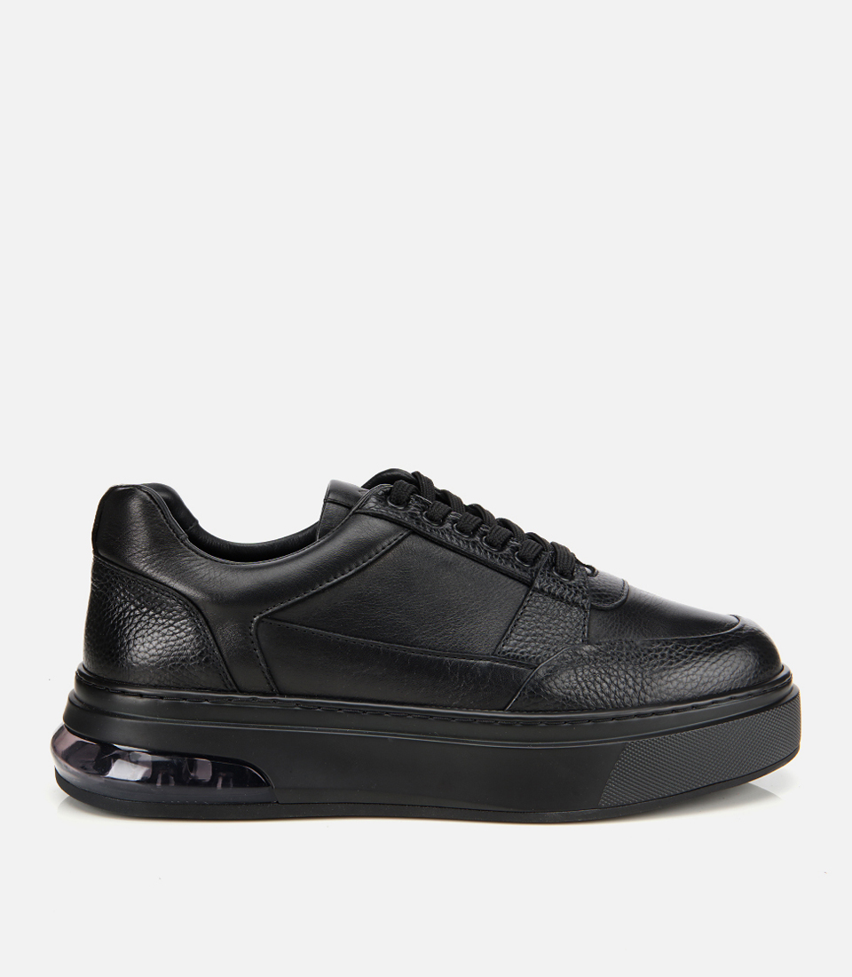 Erkek Deri Siyah Esnek Tabanlı Comfort Spor Ayakkabı