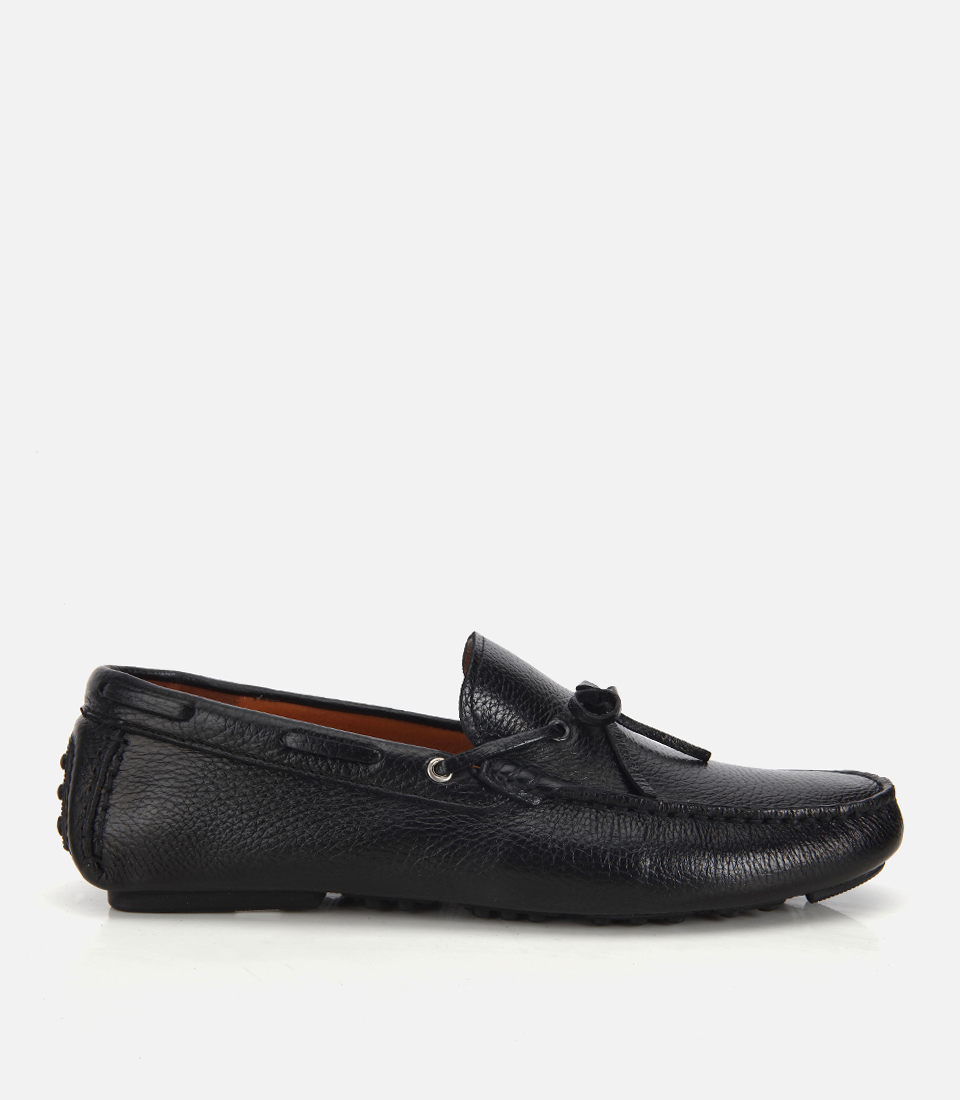 Erkek Deri Siyah Fiyonk Detaylı Günlük Loafer