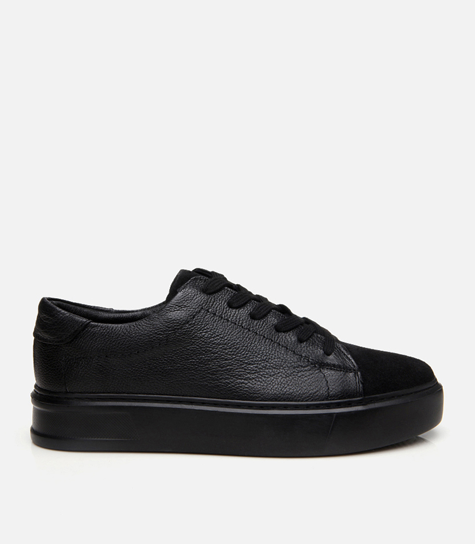 Erkek Deri Siyah Hafif Tabanlı Spor Ayakkabı