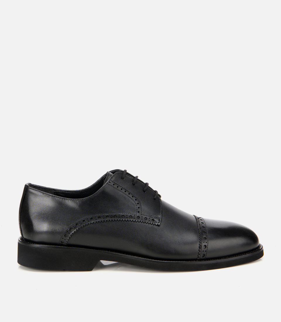 Erkek Deri Siyah İşlemeli Klasik Ayakkabı