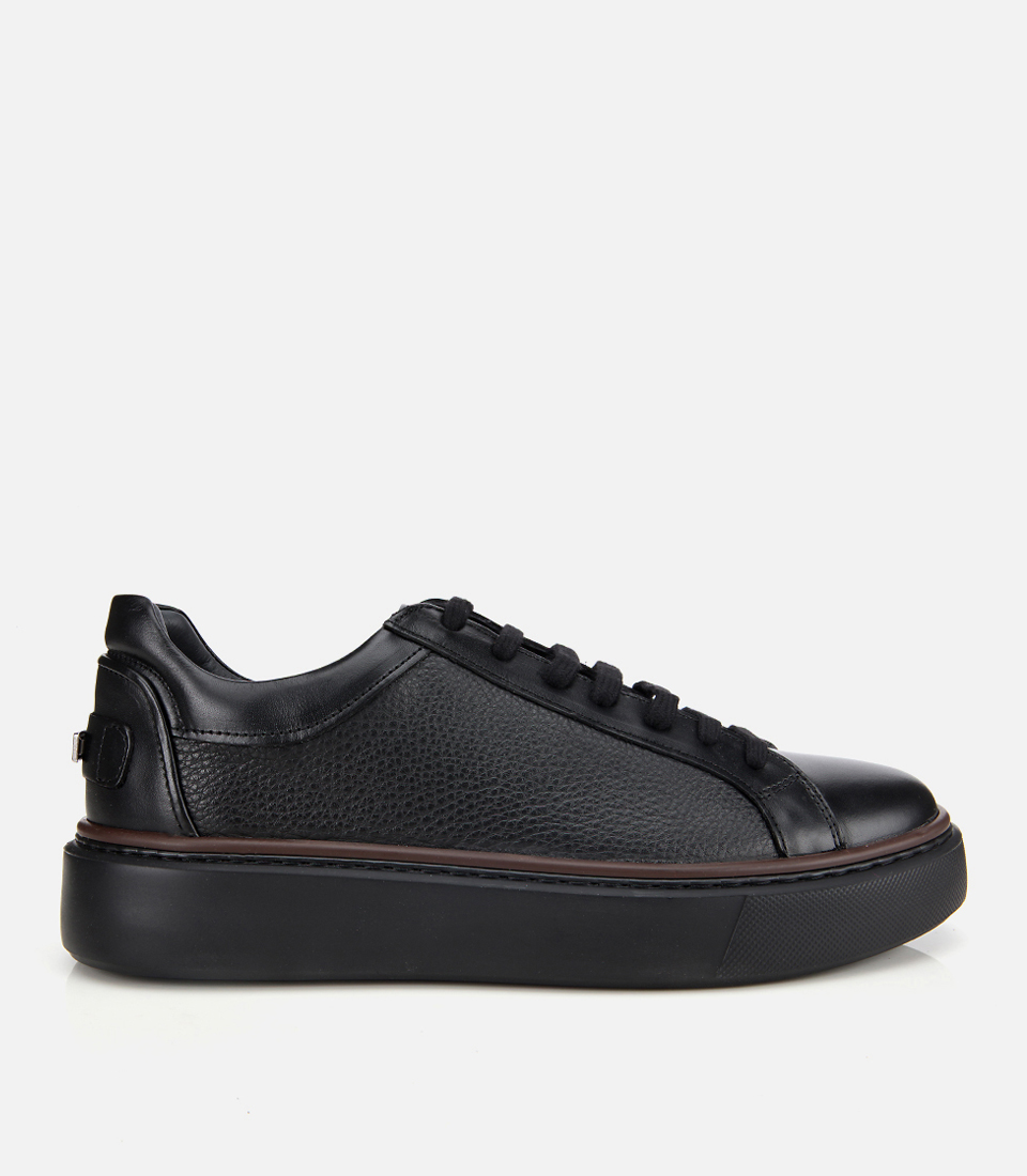 Erkek Deri Siyah Kalın Tabanlı Spor Ayakkabı