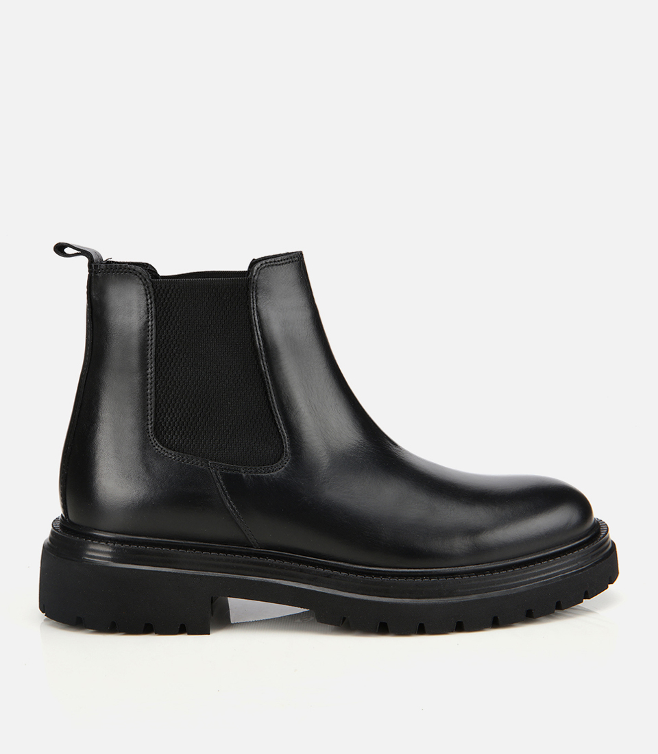 Erkek Deri Siyah Lastik Detaylı Kalın Tabanlı Chelsea Bot