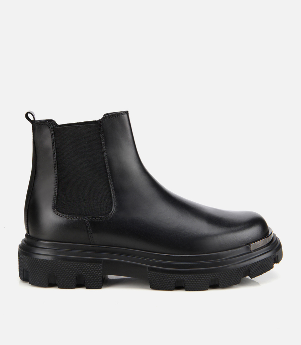 Erkek Deri Siyah Lastik Detaylı Yüksek Tabanlı Chelsea Bot