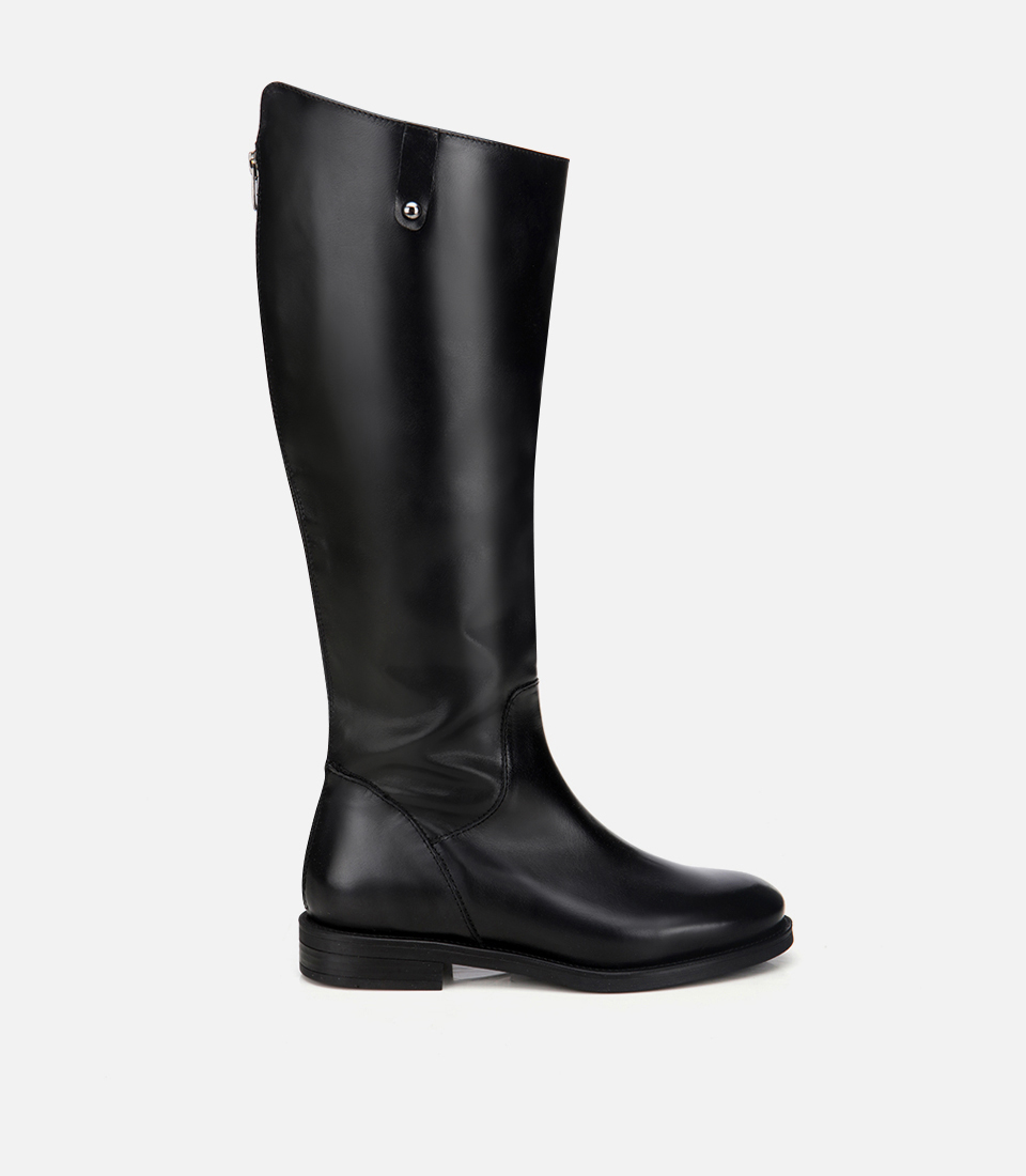Kadın Deri Siyah Arkası Fermuar Detaylı Binici Düz Çizme
