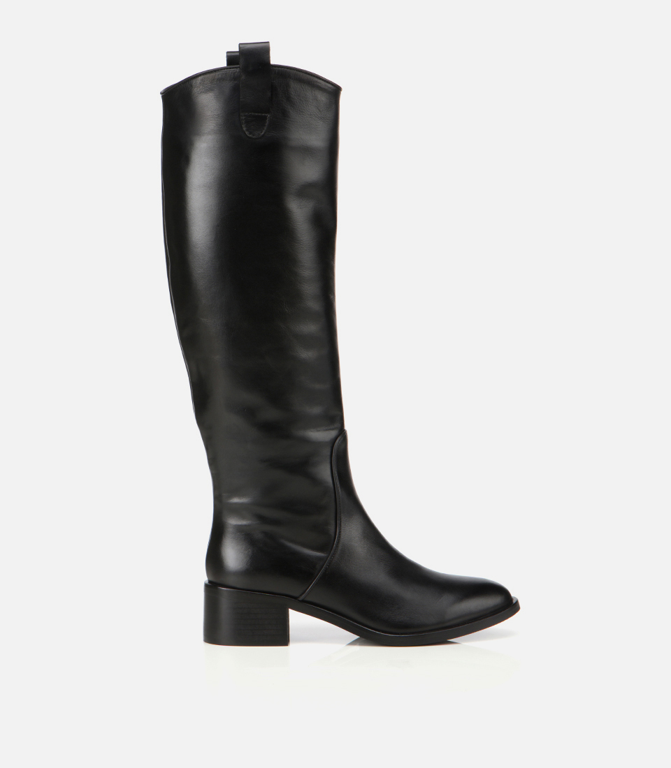 Kadın Deri Siyah Binici Uzun Düz Çizme
