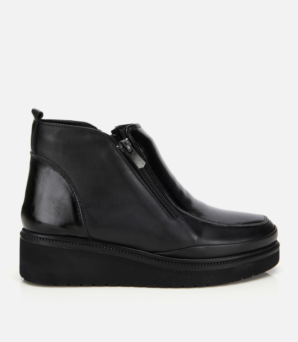 Kadın Deri Siyah Fermuar Detaylı Dolgu Topuklu Bot