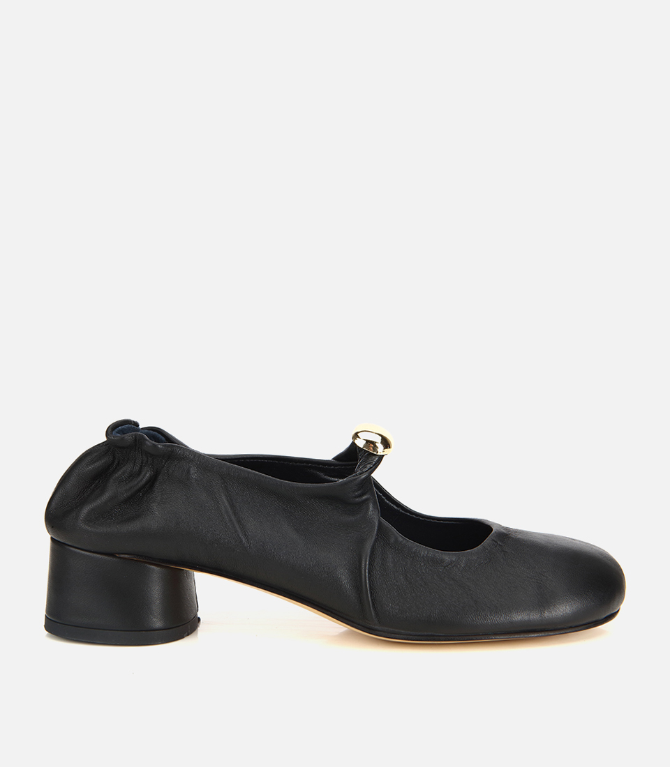 Kadın Deri Siyah Gold Toka Detaylı Arkası Lastikli Kalın Topuklu Ayakkabı