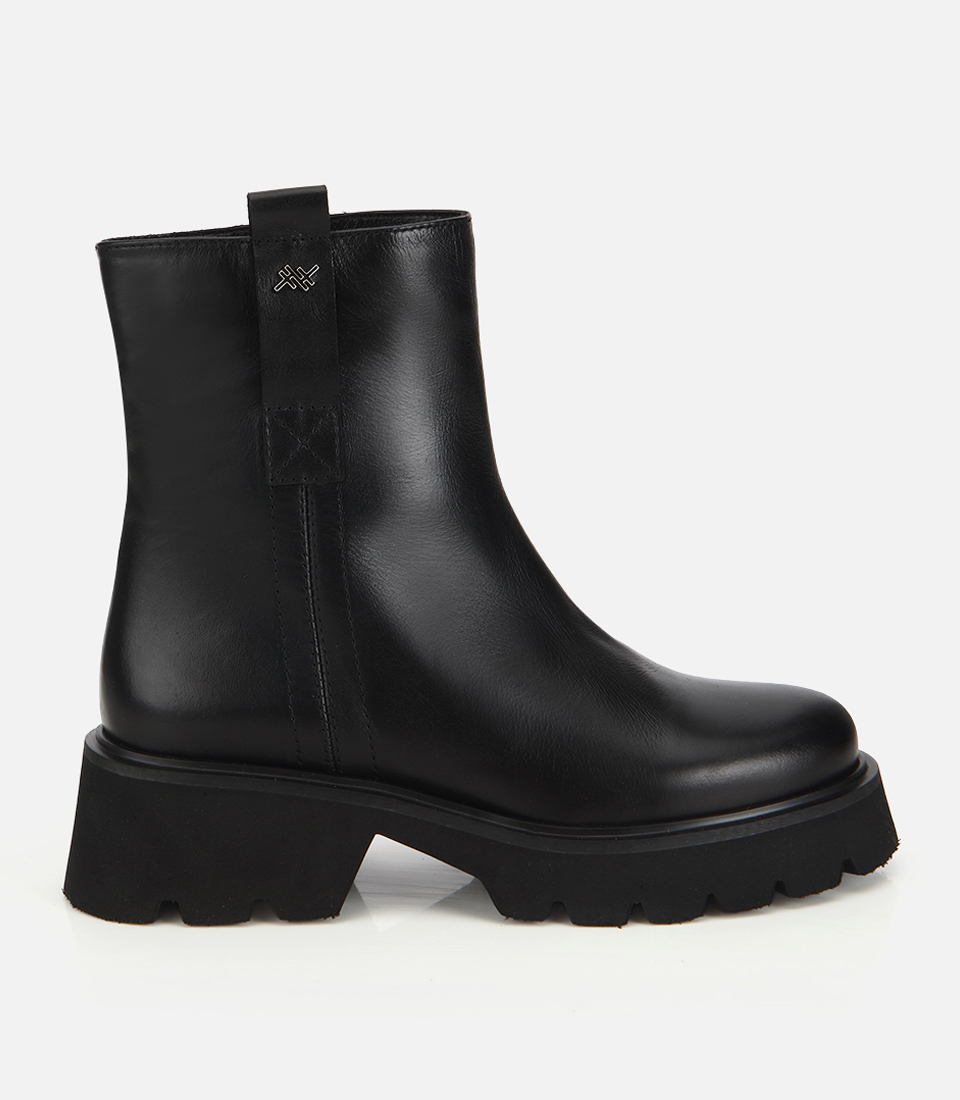 Kadın Deri Siyah Hafif Tabanlı Kalın Tabanlı Topuklu Bot