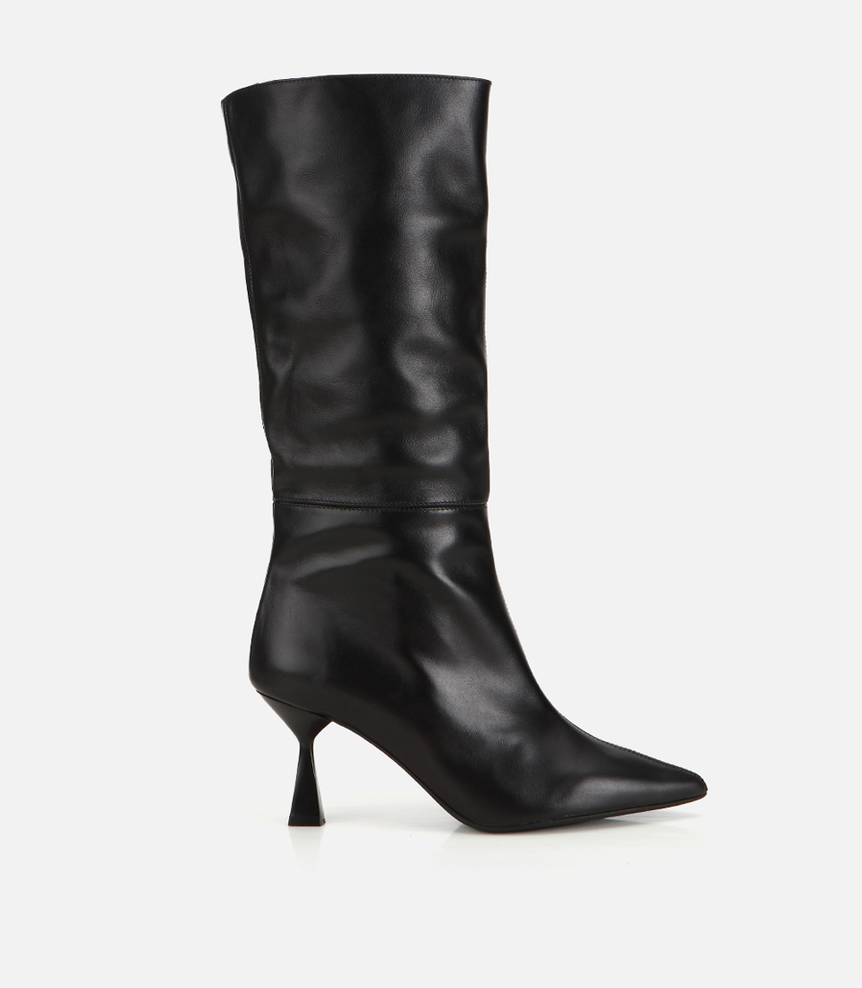 Kadın Deri Siyah İnce Topuklu Çizme