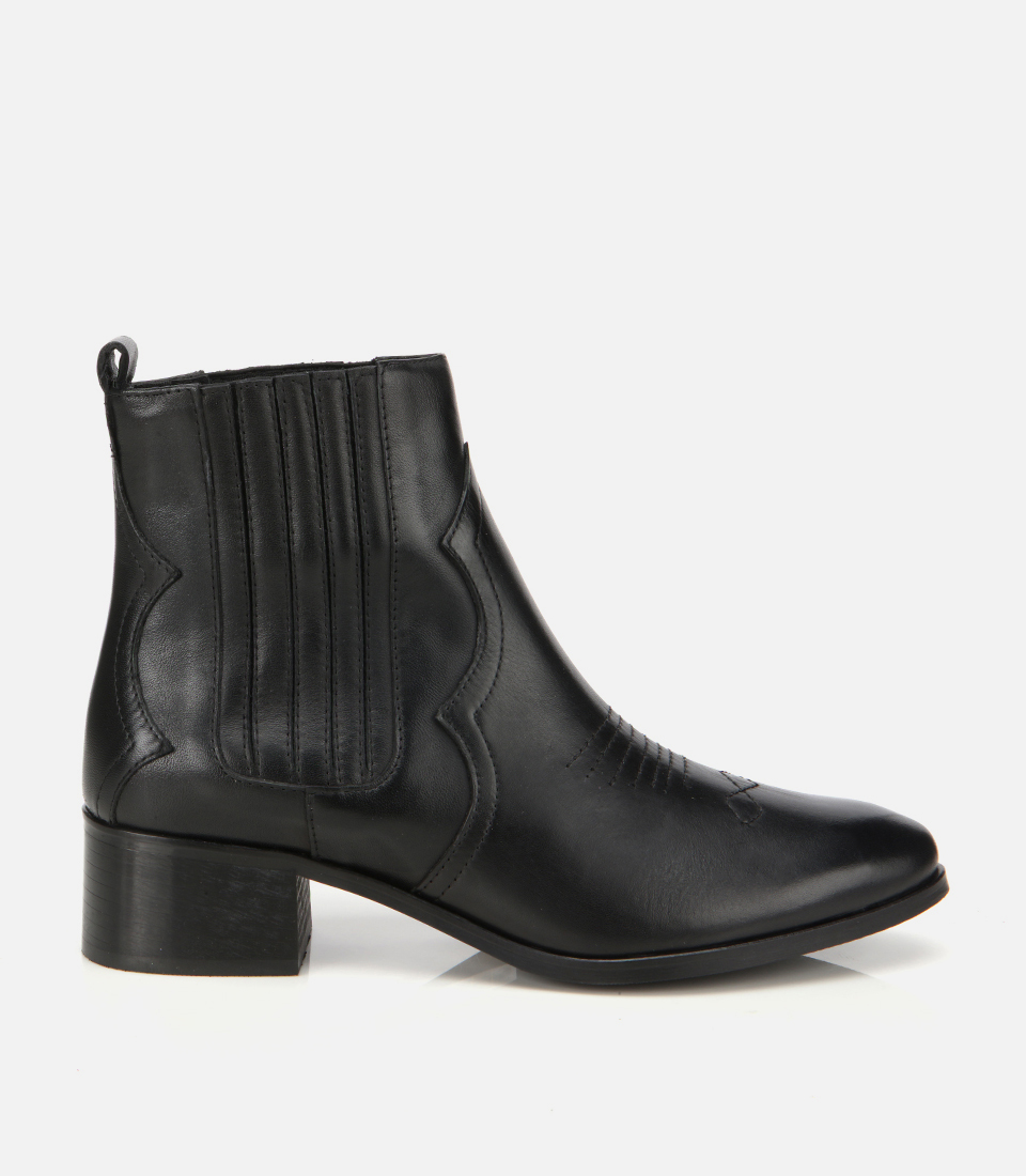 Kadın Deri Siyah İşlemeli Western Düz Bot