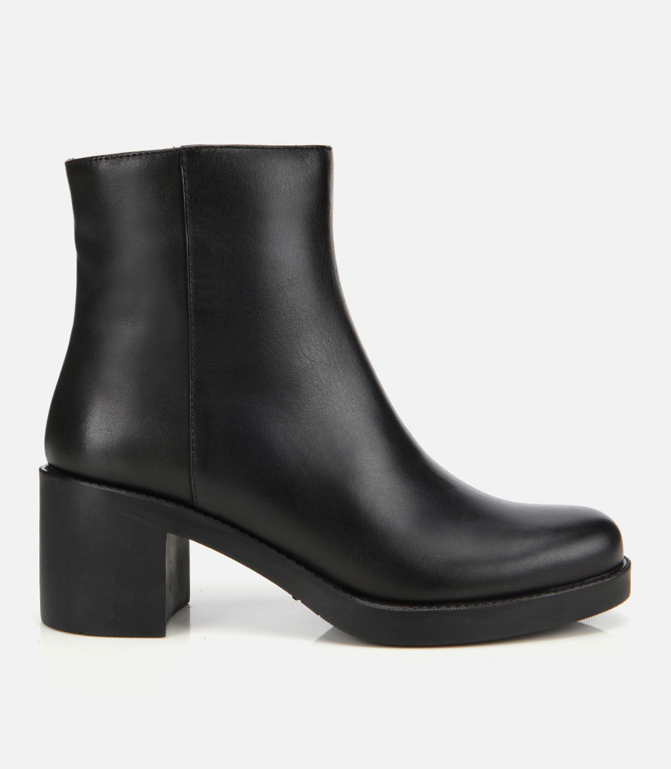 Kadın Deri Siyah Kalın Tabanlı Bilekte Topuklu Bot