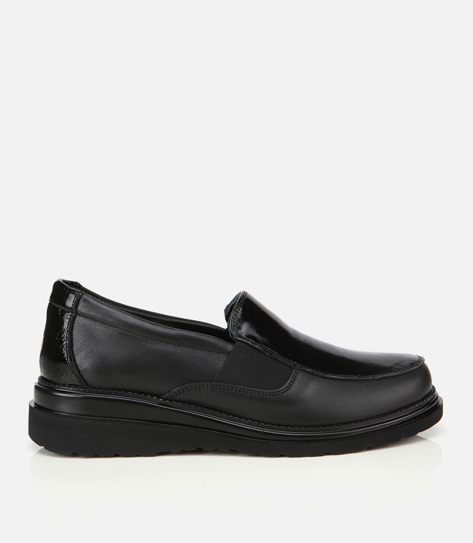 Kadın Deri Siyah Lastik Detaylı Dolgu Topuklu Günlük Loafer