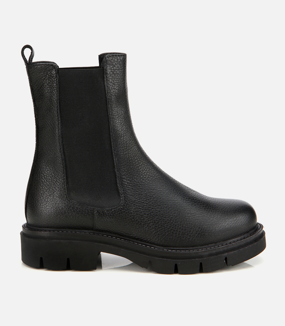 Kadın Deri Siyah Lastik Detaylı Düz Bot