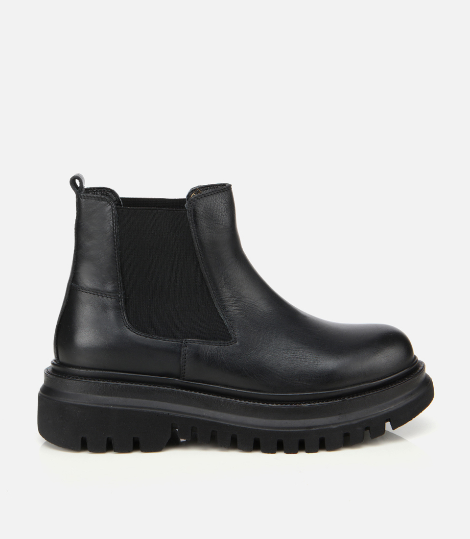 Kadın Deri Siyah Lastik Detaylı Kalın Tabanlı Düz Bot