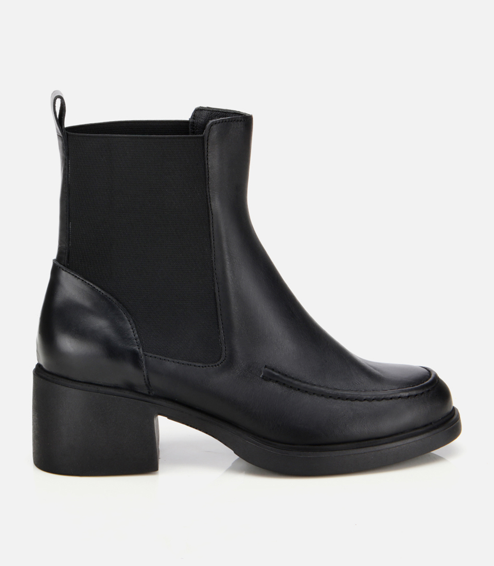 Kadın Deri Siyah Lastik Detaylı Topuklu Bot