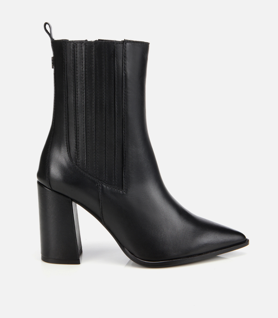 Kadın Deri Siyah Lastik Detaylı Topuklu Bot