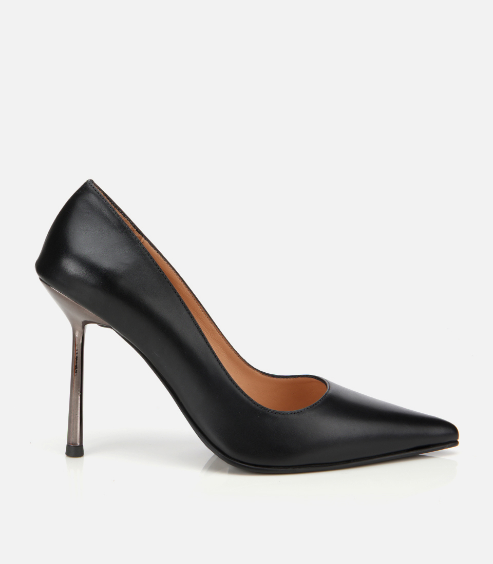 Kadın Deri Siyah Metal Detaylı Yüksek Topuklu Stiletto